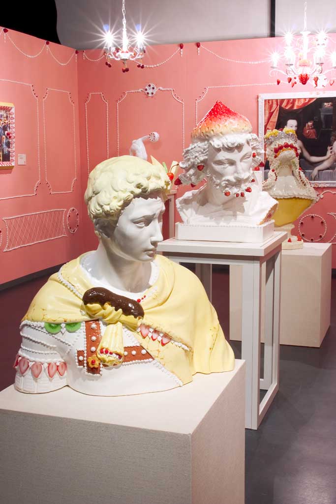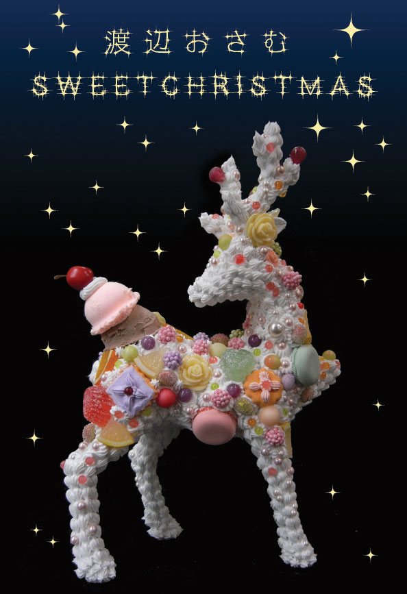 生クリームやフルーツなどのフェイクフードを駆使し、様々な作品を制作する渡辺おさむ氏。近年はNHKをはじめとしたテレビへの出演、病院やエステサロンの装飾など目ざましい活躍をしており、美術に疎遠になりがちな人々にも親しまれてきました。今回は2mのお菓子のクリスマスツリーや、お菓子のトナカイなどが会場に出現し、子供の頃に憧れた懐かしい夢にも通じるファンタジックなクリスマスの世界へと誘います。