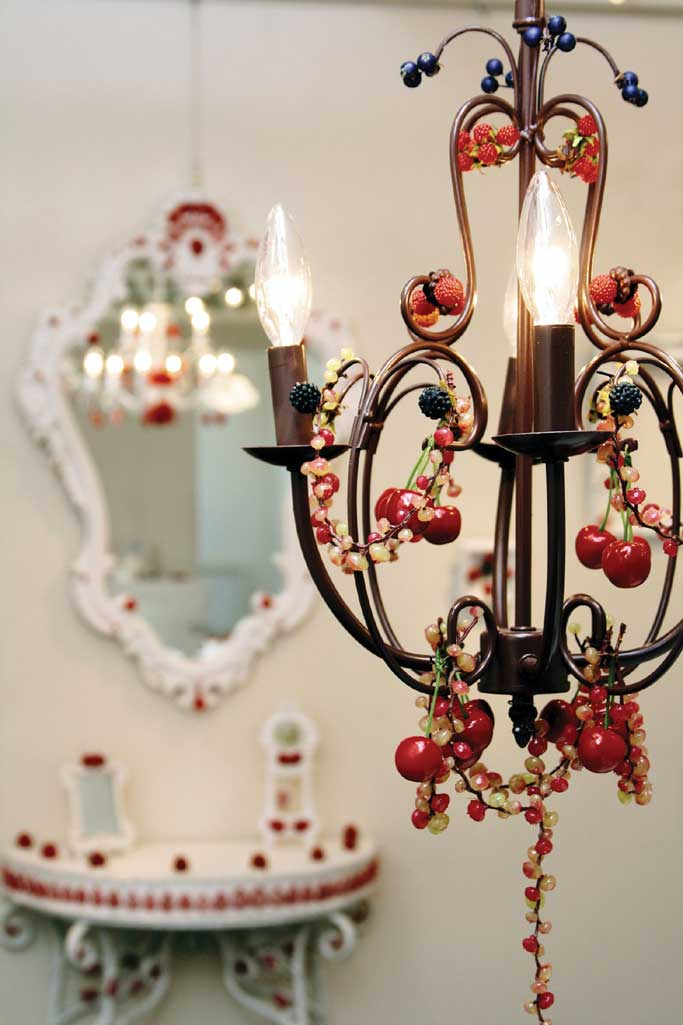 たっぷりのホイップクリームに、色とりどりのフルーツをデコレーションしたテーブルや椅子、日本庭園、印象派の名画、鹿の剥製……。スウィーツ好きの女性なら一瞬にして目がハートマークになるようなラブリーさと、一見してお腹いっぱいになってしまう怒濤のキッチュさに溢れた「Fake Cream Art」の世界。